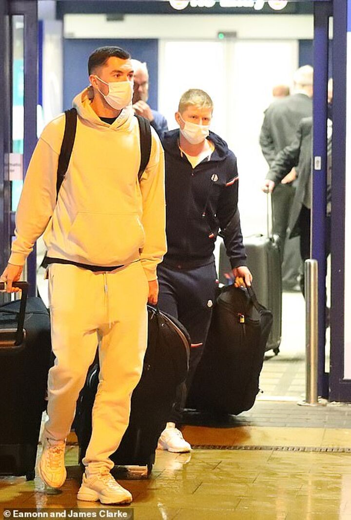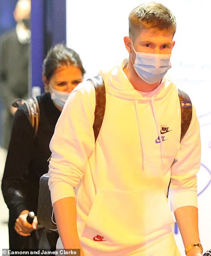 Everton centre-back Michael Keane and Manchester City's Kevin De Bruyne were also on the star-studded flight back to Manchester from Dubai.