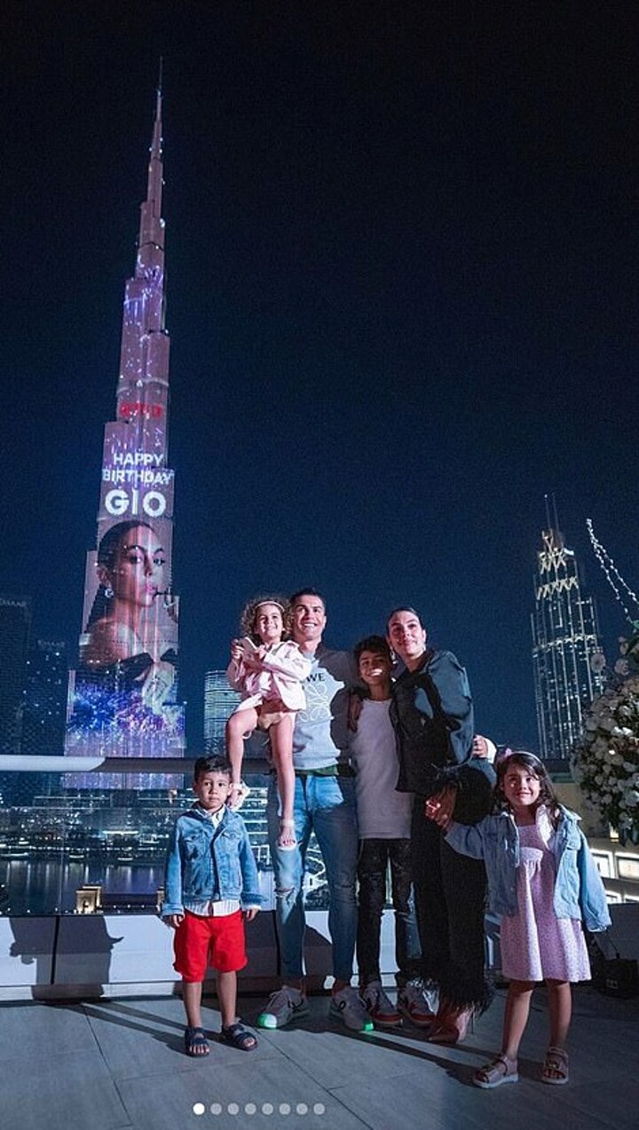 The family - who naturally flew by private jet - shared snaps from Georgina's luxury birthday celebrations as she posed in front of the Burj Khalifa, which featured a promotional image from her new Netflix show.