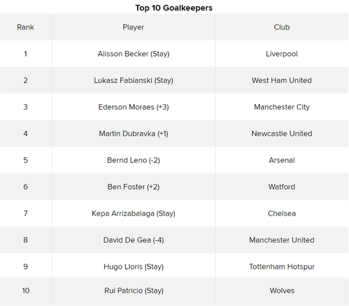 John Stones' iffy performance against Tottenham last weekend drops him three, allowing Michael Keane to jump into a season-high third after a fantastic performance against former club Manchester United the following day. His stellar campaign has flown under the radar a bit.