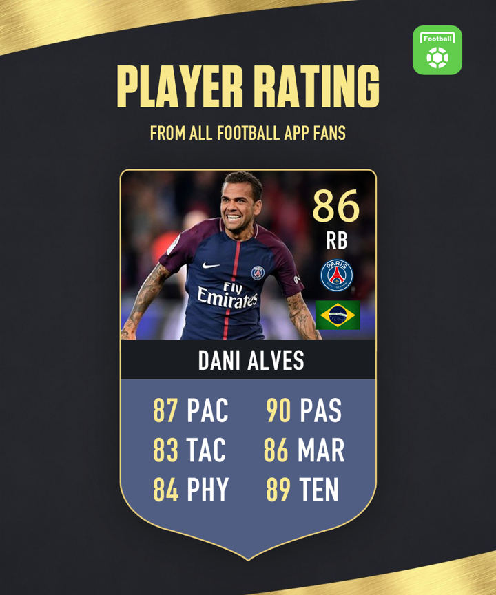 Hello everyone, welcome to - Daily Player Rating! You could be the judge and rate one player every day at 10:30 CET. The results will be declared in the form of Fut Card tomorrow. We released the rating of Dani Alves yesterday. Brazilian right-back got 86 total points with highest 90 in passing. The detailed results are as follows: