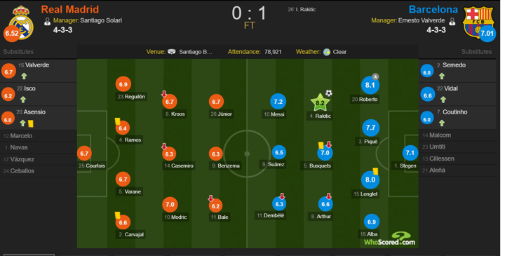 26'GOAL! Real Madrid 0-1 Barcelona (Rakitic)