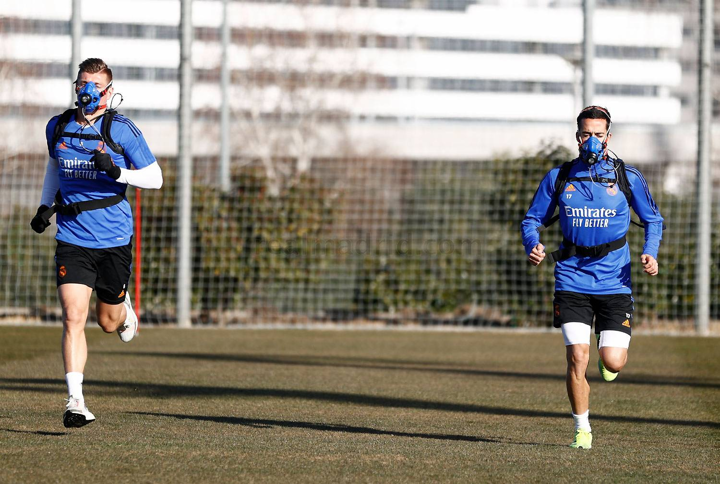 The players arrived in groups to Valdebebas to carry out a high-intensity session with the hypoxia masks today.