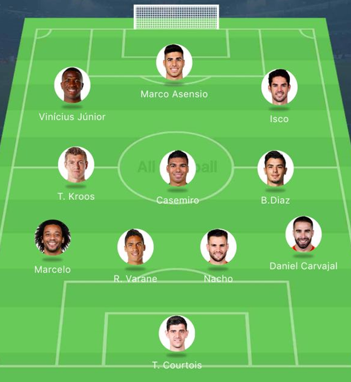 Karim Benzema and Sergio Ramos both remain sidelined with injuries while Thibaut Courtois is expected to keep his starting place ahead of Keylor Navas.