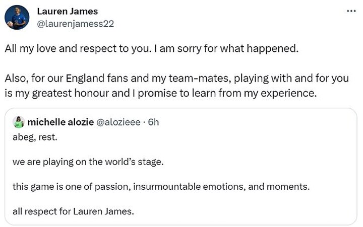 'All respect for Lauren James.'