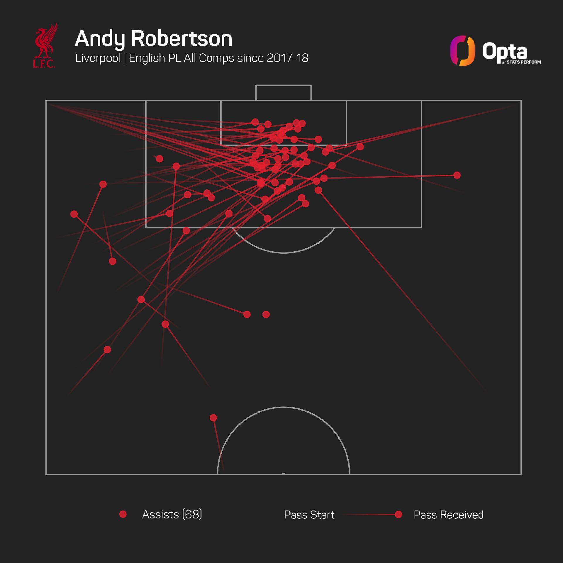 The Scotland international has made 354 appearances across all competitions, netting 12 goals and providing 68 assists, the latter total only being bettered by Trent Alexander-Arnold (85) and Mohamed Salah (113) during his time on Merseyside.