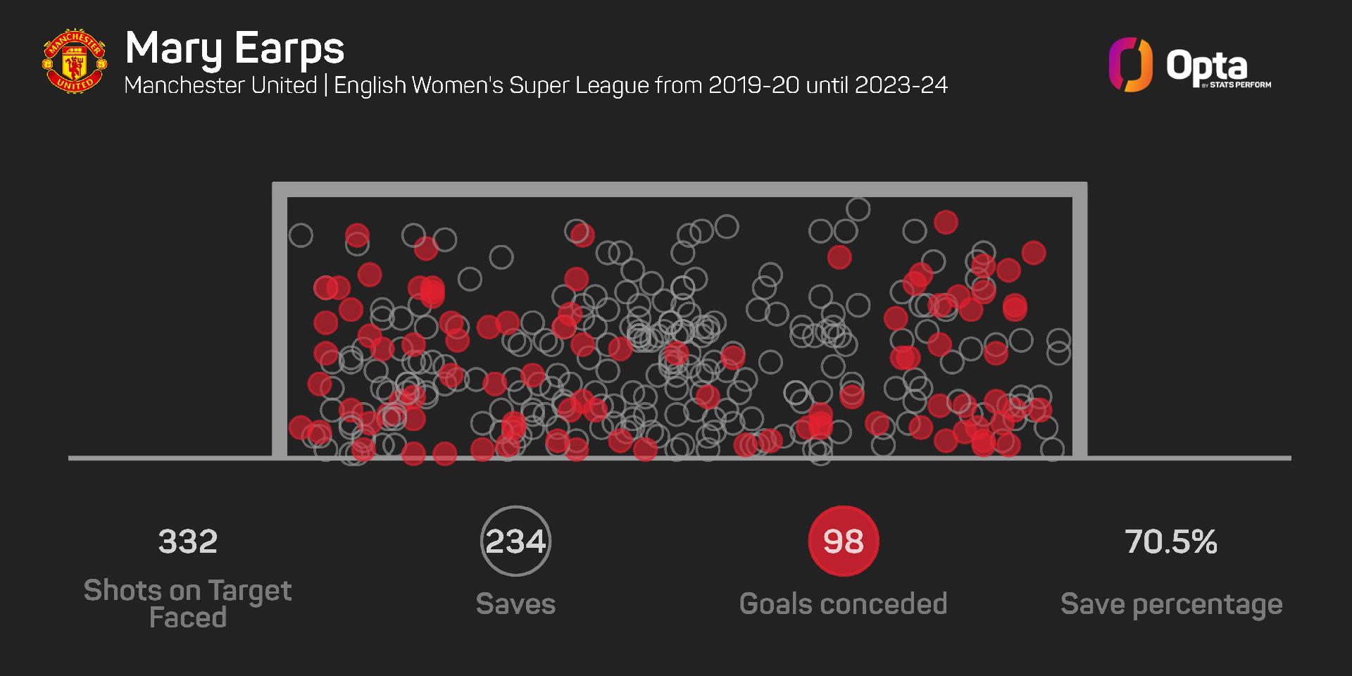 Earps made 102 appearances for United in the WSL, keeping 46 clean sheets in those matches, while also helping the club to FA Cup glory in 2023-24.