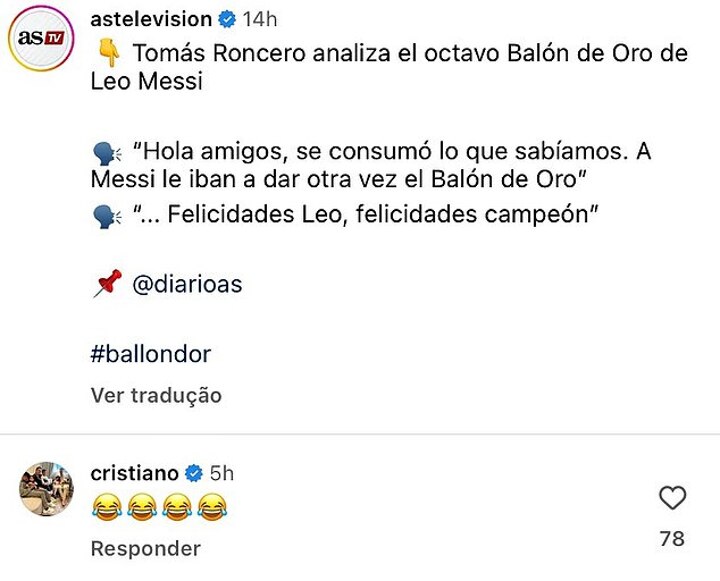 Spanish journalist Tomás Roncero posted a video where he said: 'Hello friends. What we knew happened, they were going to give Messi another Ballon d'Or again.
