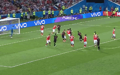 Russia's eight-minute lead comes to an abrupt end as they concede a soft goal on the back of a Mandzukic break, with the striker turning in a simple cut-back pass off the left wing, unmarked, for his teammate to head home behind Akinfeev on the right.