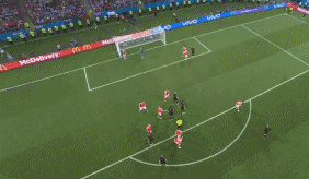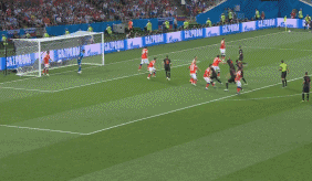 Lovren heads across the corner to Rebic who puts his own header just over the crossbar. Russia's marking in the box from that set-piece was rather loose there.