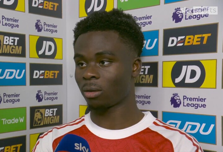 Arsenal played out a 2-2 draw against Wolverhampton Wanderers away from home in Matchweek 31 of the Premier League. After the final whistle, Arsenal forward Bukayo Saka spoke to Sky Sports.