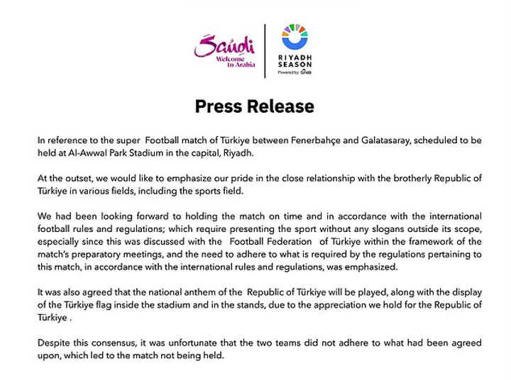 The Turkish federation blamed the postponement on 'some problems in its organisation' and thanks the Saudi Football Federation for their efforts in organising the event.