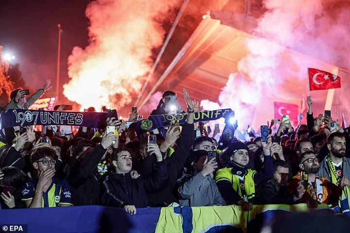 The teams duly flew back to Istanbul late on Friday night and were greeted by hundreds of fans at the airport, many waving Turkish flags and holding aloft images of Ataturk.