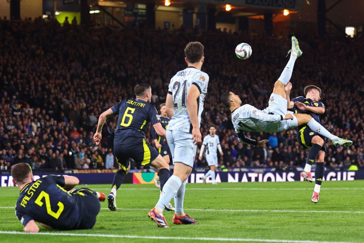 Portugal came closest to finding the net, with Craig Gordon getting down expertly to stop Bruno Fernandes slotting home from a Rafael Leao cutback in the 87th minute.