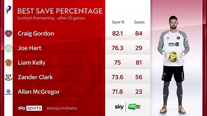 Keeping the ball out of the net is often celebrated as much as a goal and Celtic's summer signing Joe Hart leads the way in the race for the golden glove. The ex-England shot-stopper is just ahead of Gordon at Hearts who is an early contender for player of the season.