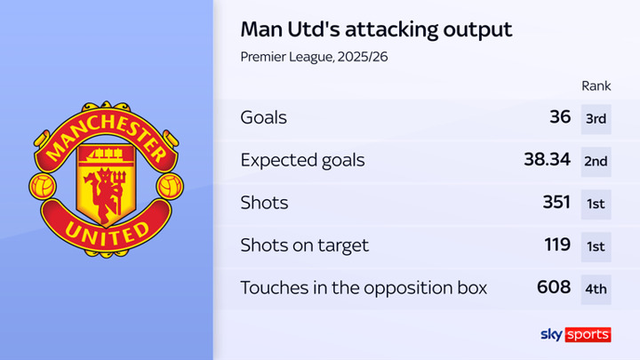 Manchester United have, after all, displayed attacking improvement amid their inconsistency this season. Only Manchester City and Arsenal have scored more goals, while only City have a higher 'expected' total. They rank top for shots and shots on target.