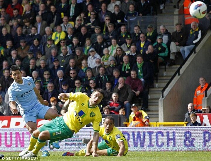 Aguero's first and City's second saw him strolling into Norwich territory before touching on to his compatriot Carlos Tevez with a flick of his right boot.