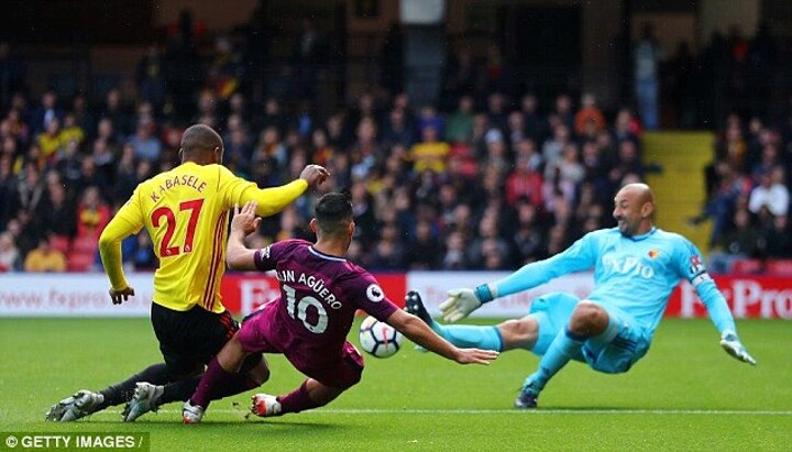 Another goal scored from a tough angle, Aguero bagged his hat-trick against Watford at Vicarage Road in some style.