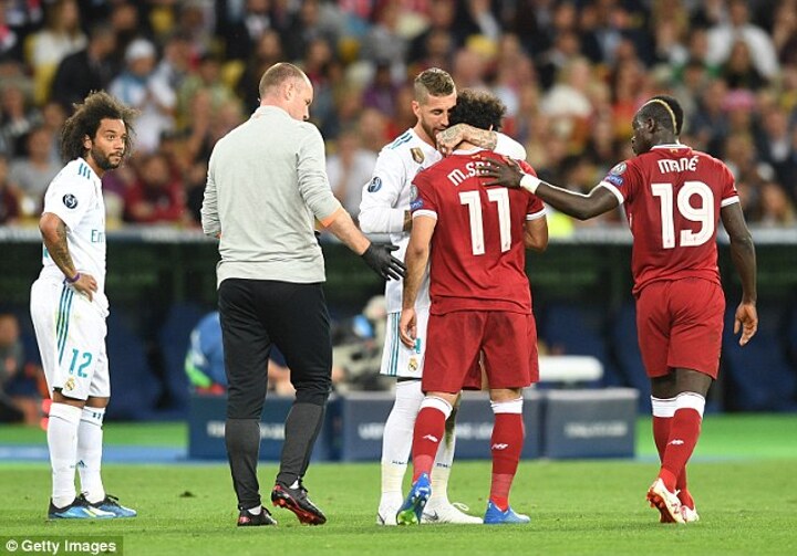 A shoulder problem forced Salah into a premature exit after he tangled with Ramos who then landed on top of the Reds star while their arms were linked.