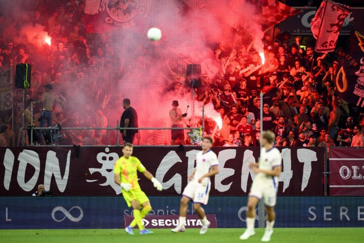 Play was halted with a minute to go when hundreds of noisy fireworks were fired from the home end in a deafening crescendo.