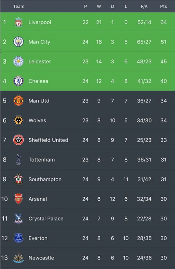 EPL Standings