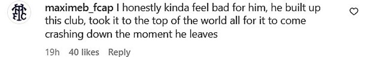 Another fan said: 'I honestly feel bad for him, he built up this club, took it to the top of the world all for it to come crashing down the moment he leaves.'