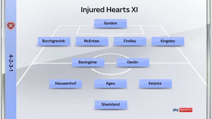 Oisin McEntee, Beni Baningime and Sabah Kerjota are "50/50" for the weekend, while long-term absentees Cammy Devlin, Lawrence Shankland, Stephen Kingsley, Christian Borchgrevink, Calem Nieuwenhof and Findlay Pollock remain out.