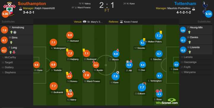 81' GOAL! Southampton 2-1 Tottenham (Ward-Prowse)