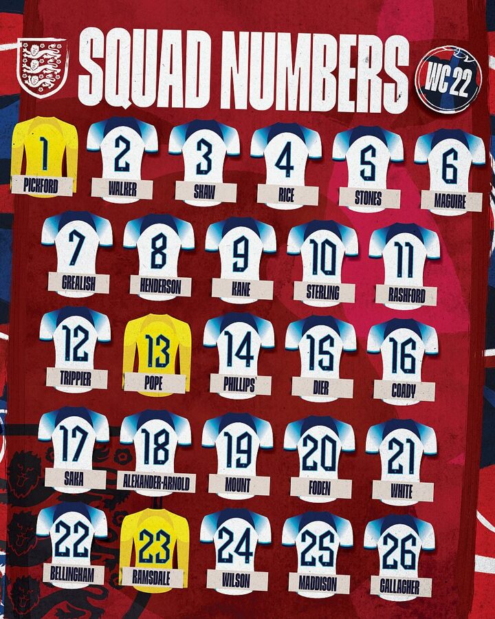 England have confirmed their squad numbers for the World Cup in Qatar and they may give some hints as to who will be in Gareth Southgate's starting XI.
