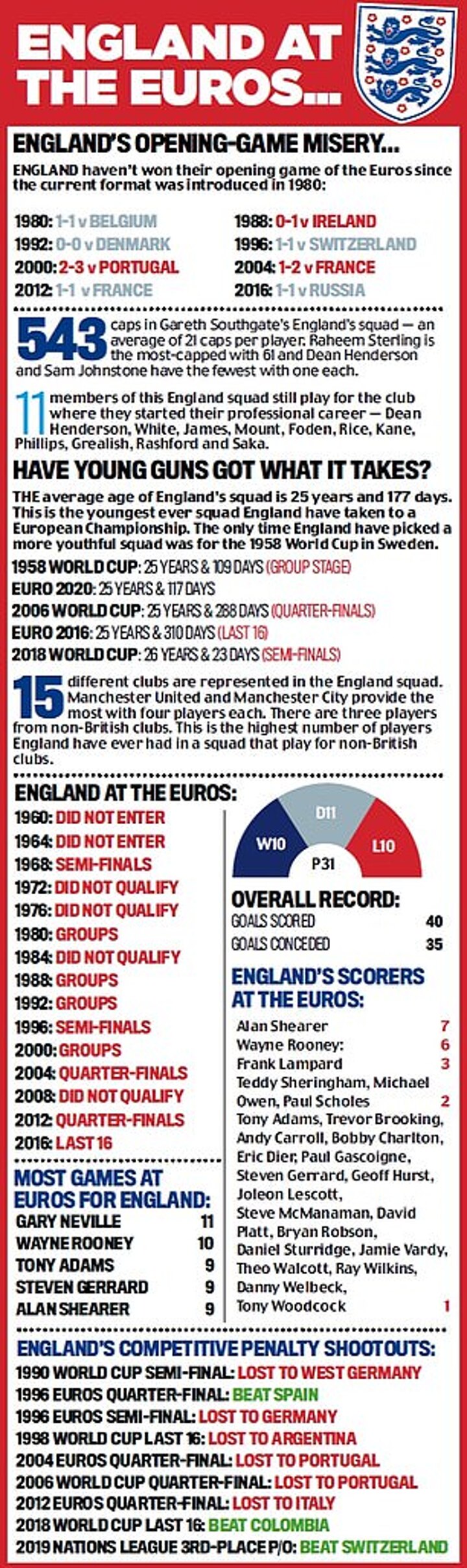 England have the capacity to hurt teams. There is a liberating and inspiring sureness and confidence about young players such as Jack Grealish (youthful in terms of England experience), Mason Mount, Jude Bellingham, Jadon Sancho and Phil Foden. Harry Kane is fit and remains one of the world's most reliable and dangerous goalscorers.