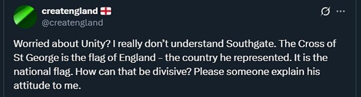 'Worried about Unity? I really don’t understand Southgate,' one user wrote on X. 'The Cross of St George is the flag of England - the country he represented. It is the national flag. How can that be divisive? Please someone explain his attitude to me.'