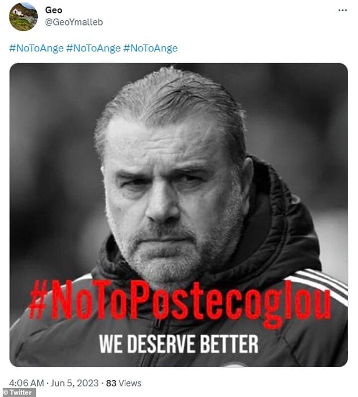Towards the end of May, the hashtags #NoToAnge and #NOTOPOSTECOGLOU emerged, with several fans expressing their apprehension concerning the potential appointment.