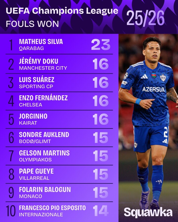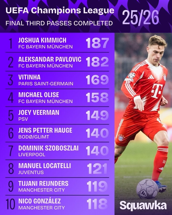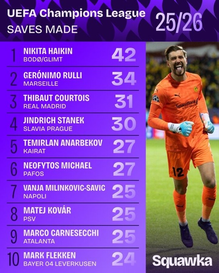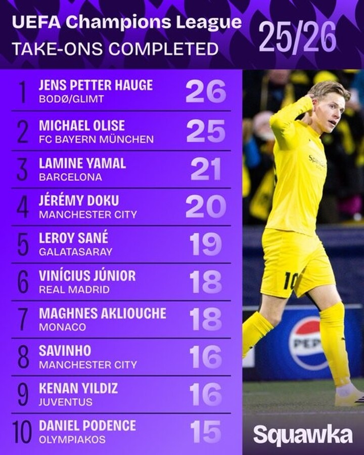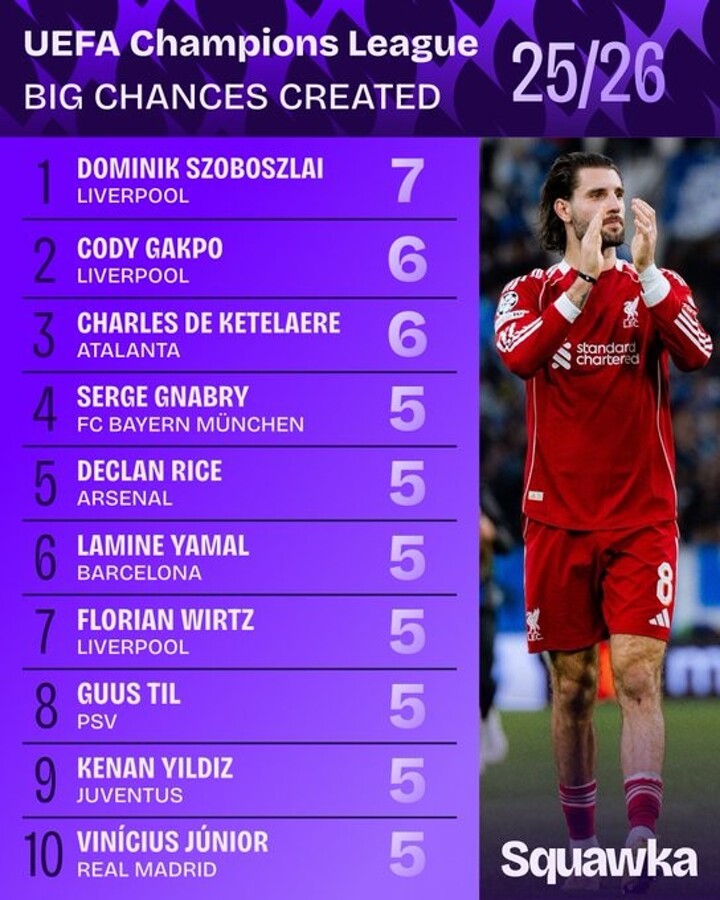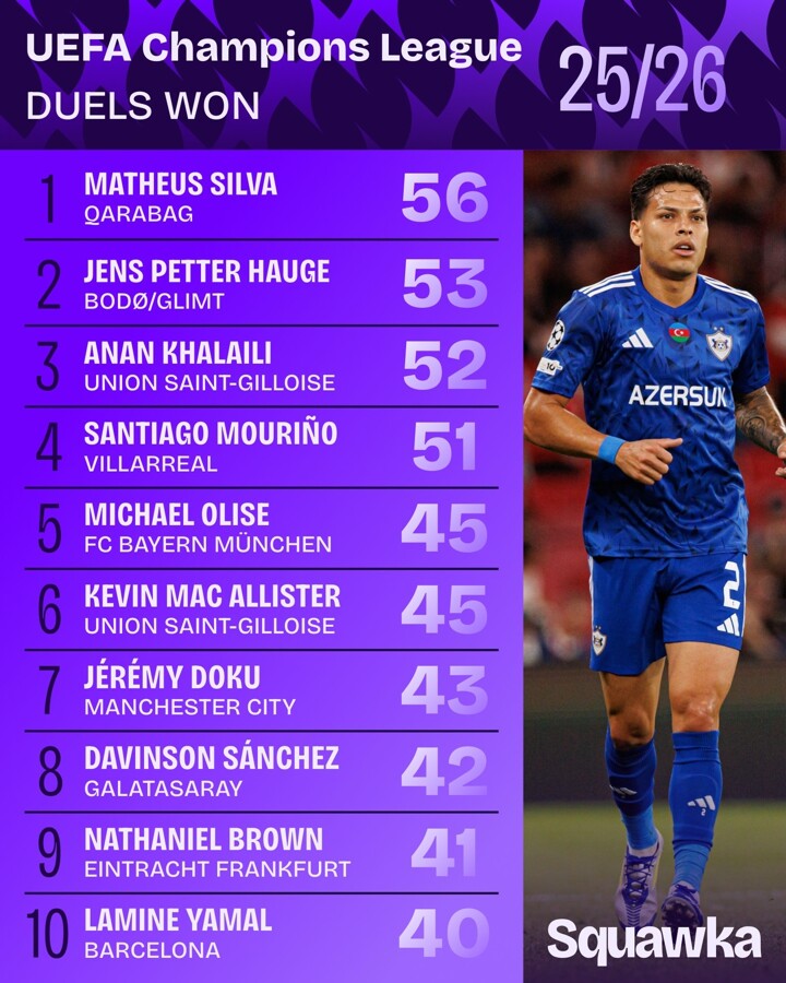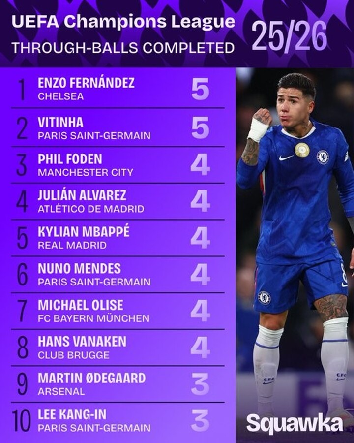 Squawka lists UCL statistics: Mbappe ranks first in multiple statistics