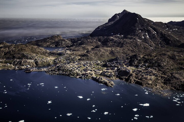 With just over 2,000 inhabitants, it is the most populous community on the eastern coast, and the seventh-largest town in Greenland. The fog and low clouds obscured the surrounding mountains but accentuated the remoteness of this town.