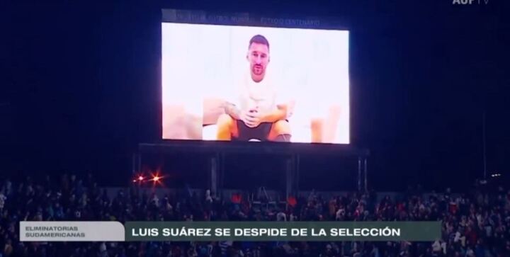 Following Friday's match, Suarez and his family gathered on the pitch to watch a message from his friend Messi.