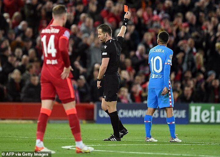 Atletico also had a player sent off during the clash in Madrid when Antoine Griezmann received his first Champions League red card for a high foot on Roberto Firmino.