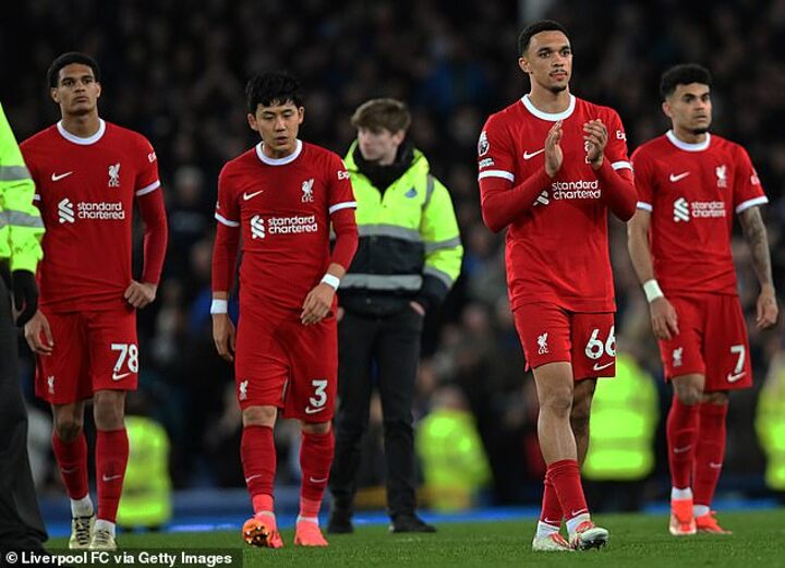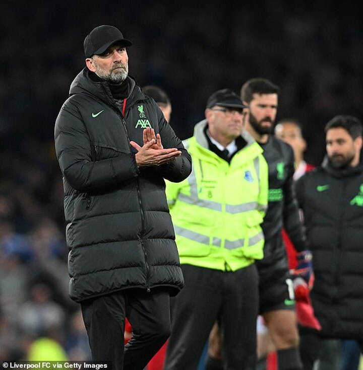 ‘I don’t know [if we’re still in the race],' Klopp admitted after the Merseyside derby. 'I can only apologise to the people. Everybody who is with us knows how hard this is for us as well, but I know for other people it’s especially hard. So we should have done better but we didn’t and that’s why we lost.’