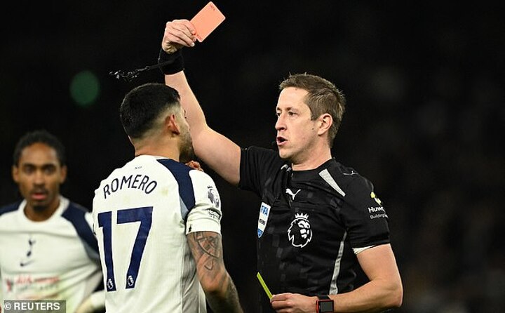With the crowd up and Spurs pushing for a late winner, Cristian Romero made his team's task harder with Tottenham's second red card of the afternoon, this time a second yellow for lashing out at Reds centre-half Ibrahima Konate.