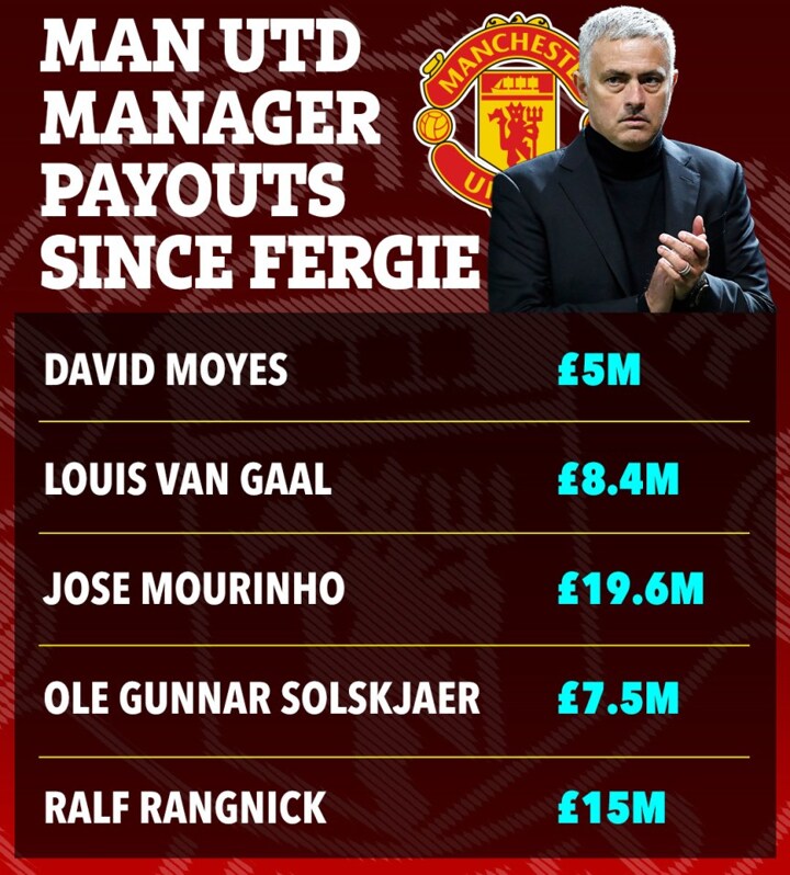Louis van Gaal was paid £8.4m after leaving United, while David Moyes was paid £5m.