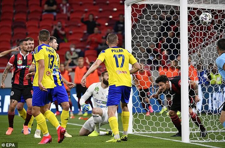 Djordje Kamber, who clinched the 2-1 victory over Mezokovesd-Zsory, was seen with a megaphone leading the celebrations at the front of one stand at the Puskas Ferenc Arena.