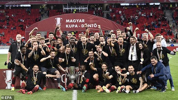 Budapest Honved players celebrated winning the Hungarian Cup final in front of a mass of fans who were not following social distancing on Wednesday.
