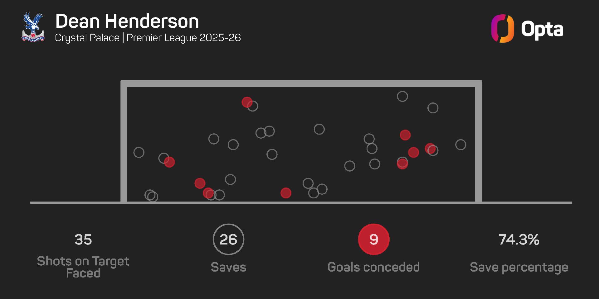 Dean Henderson has faced 34 of those attempts on target, and according to Opta's expected goals on target (xGoT) model, has prevented 4.4 goals for Palace this term.
