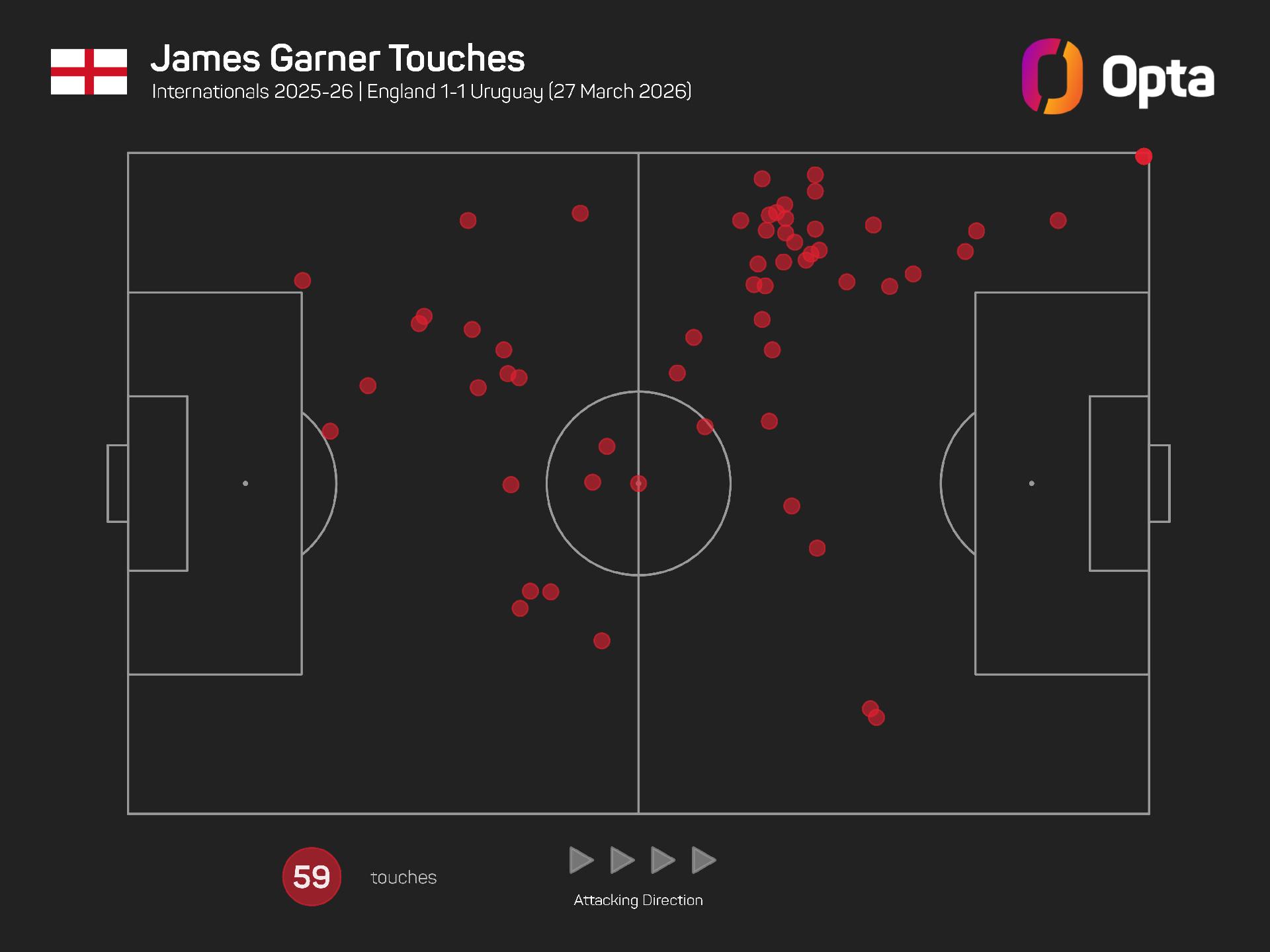 No other player on the pitch could match Garner's four chances created, while he also led the way for passes in the final third (15) and won six of his nine duels.