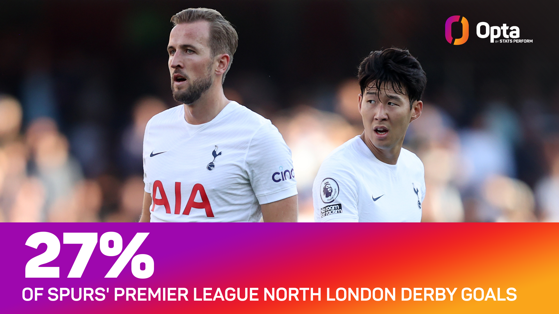 Between them, Kane (14) and Son (eight) are responsible for 27% of Spurs' Premier League goals against Arsenal (22/82).