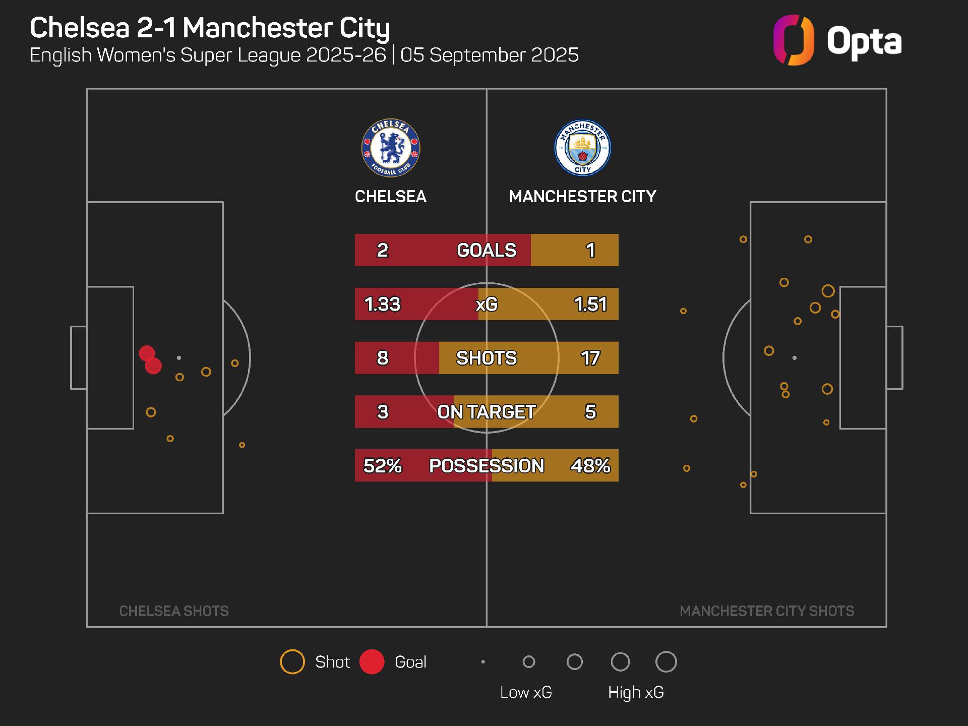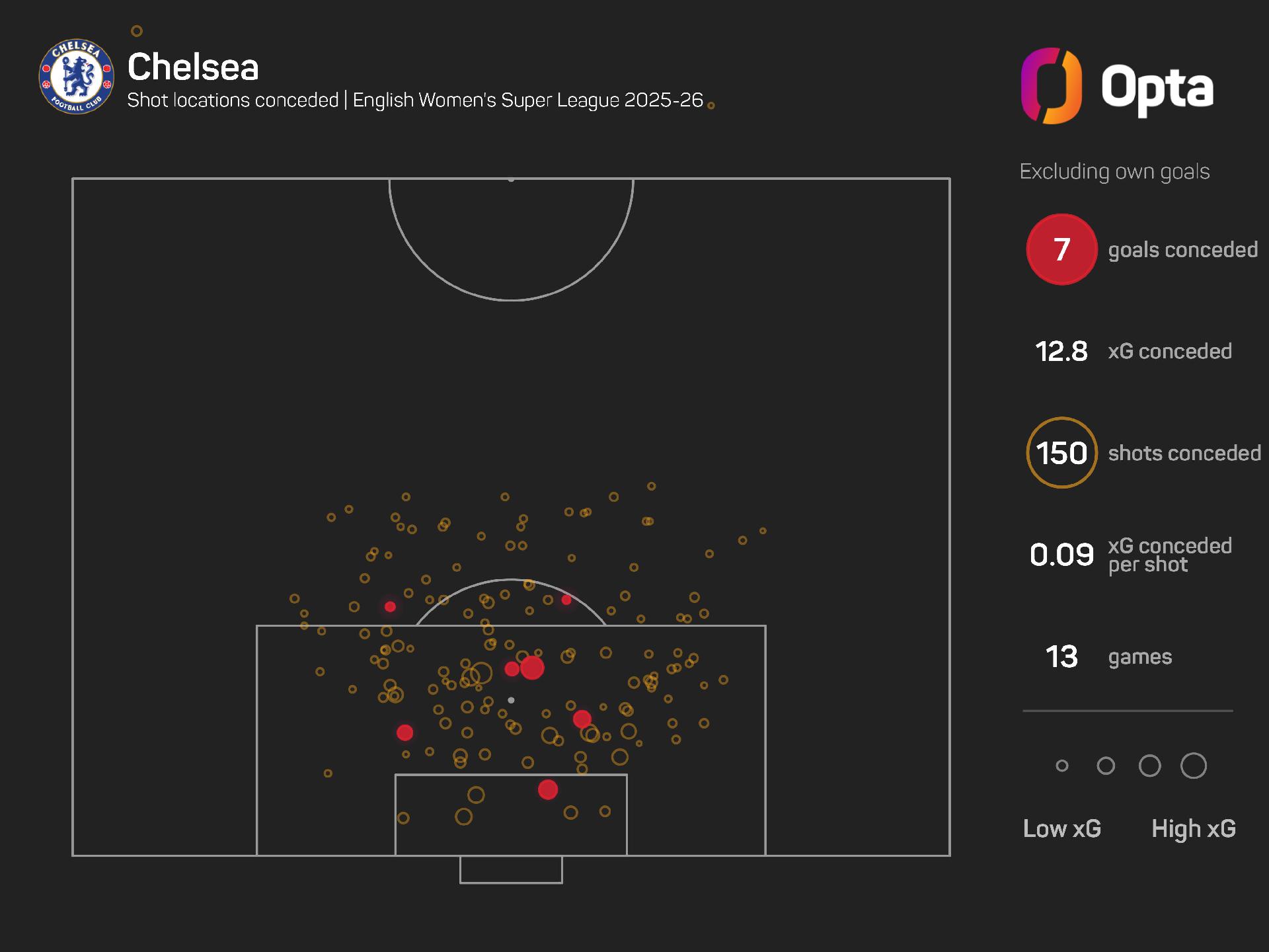 Last weekend, Chelsea had 18 shots against Arsenal but only managed to get one on target, meaning 2025-26 is the first WSL campaign in which they have recorded one or fewer shots on target in multiple games (also versus Liverpool on MD9).