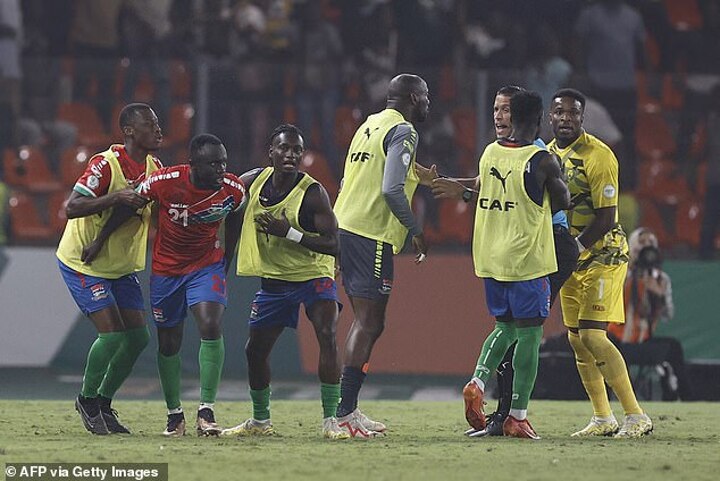 Not two minutes later Muhammed Sanneh looked to have somehow equalised for The Gambia before replays showed he had actually attempted a very poor rendition of Diego Maradona's iconic Hand Of God goal.