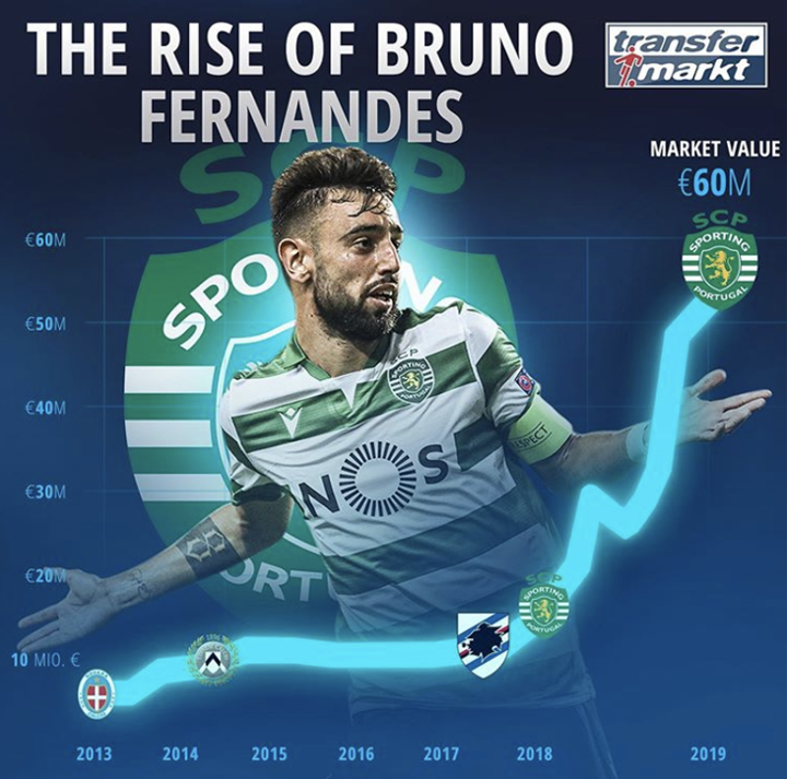 The rise of Bruno Fernandes' market value: from €20M to €60M for just one year... Where is his next station? Copyright Declaration