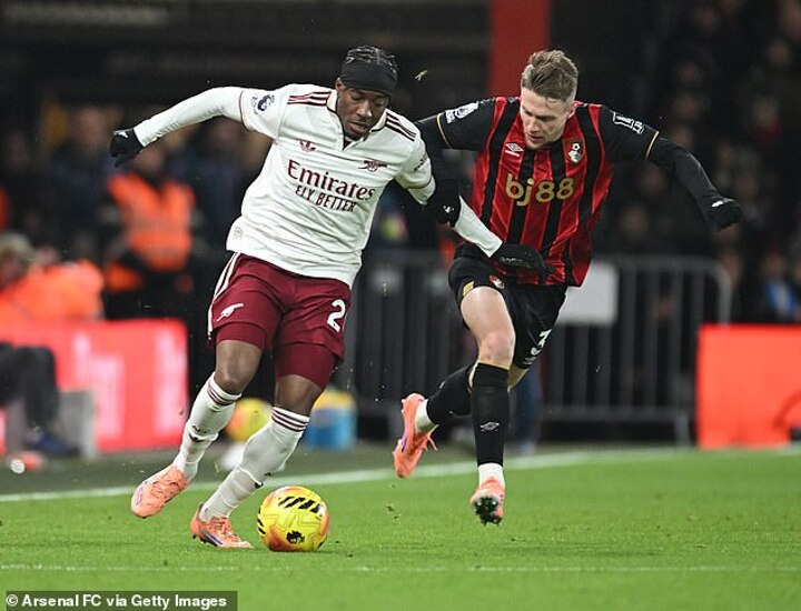 October 2024: a breakaway by the forward saw him pulled down by William Saliba, with the Frenchman sent off for denying a goal scoring opportunity. The Cherries went on to win 2-0.