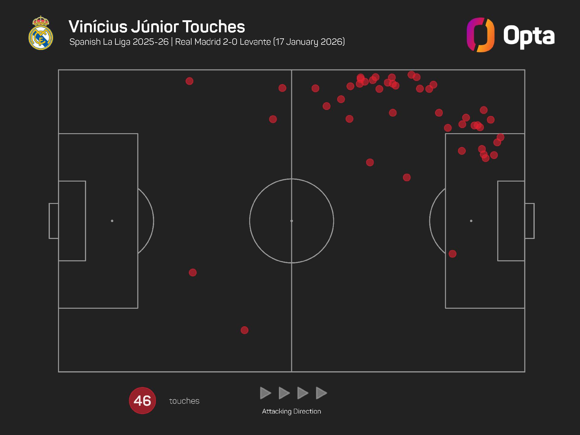 He also leads all players in the Champions League for goals (nine), goal involvements (nine), and chances created (20) this season, while Vinicius has not scored in six appearances in the 2025-26 edition.