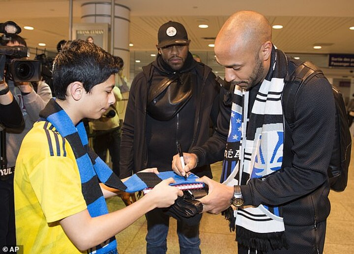 Henry was greeted at the airport by Montreal fans and took time to sign autographs and pose for pictures with them while wearing the club scarf.