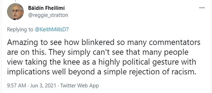 While a third said: 'Unfortunately taking the knee, whether it means so or not, is now associated by many with a political movement who run petitions off their websites calling for #DefundThePolice and educational movements which do not sit well with a large proportion of the population.'